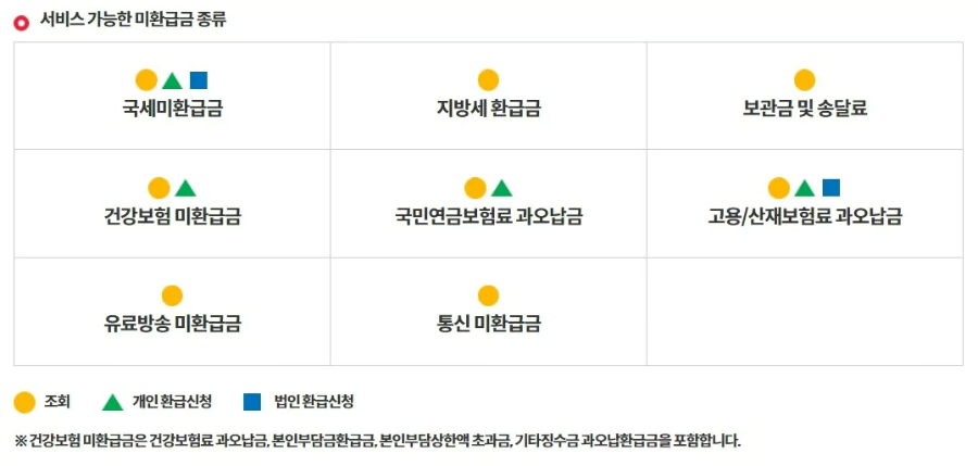 ์ ๋ถ 24์์๋ ๊ตญ์ธ, ์ง๋ฐฉ์ธ, ๊ตญ๋ฏผ์ฐ๊ธ ๊ณผ์ค๋ฉ๊ธ, ๊ฑด๊ฐ๋ณดํ ๋ฏธํ๊ธ๊ธ, ์ ๋ฃ๋ฐฉ์ก ๋ฏธํ๊ธ๊ธ, ํต์ ๋ฏธํ๊ธ๊ธ ๋ฑ์ ํ ๋ฒ์ ์ฝ๊ฒ ์กฐํํด ๋ณผ ์ ์์ต๋๋ค.