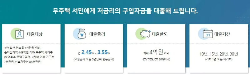 ์ฐ 2.45%์์ ์ฐ 3.55% ์ฌ์ด์ ๋ฎ์ ์ด์์จ์ ์ ์ฉ๋ฐ์ ์ ์์ต๋๋ค. ์ด๋ ๊ธฐ์กด์ ์ฃผํ๋ด๋ณด๋์ถ๋ณด๋ค ํจ์ฌ ์ ๋ฆฌํ ์กฐ๊ฑด์ผ๋ก, ์๋ฏผ๋ค์ ๋ถ๋ด์ ํฌ๊ฒ ์ค์ฌ์ค๋๋ค.