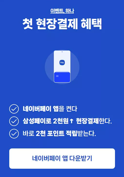 ์ง๋๋ฌ ์ผ์ฑํ์ด๋ ๋ค์ด๋ฒ์์ ํ์ ์ ํตํด ๋ค์ด๋ฒํ์ด์์๋ ์ผ์ฑํ์ด๋ฅผ ์ธ ์ ์๋ ์๋น์ค๋ฅผ ์ถ์ํ์ต๋๋ค. ์ค๋์ ๋ค์ด๋ฒํ์ด ์ผ์ฑํ์ด์ ์ฌ์ฉ๋ฐฉ๋ฒ์ ์ด์ ๋ฆฌํ๊ณ ์ถ์ ๊ธฐ๋ ์ด๋ฒคํธ๋ก ํฌ์ธํธ ์ ๋ฆฝ ๋ฐฉ๋ฒ ์์๋ณด๊ฒ ์ต๋๋ค.