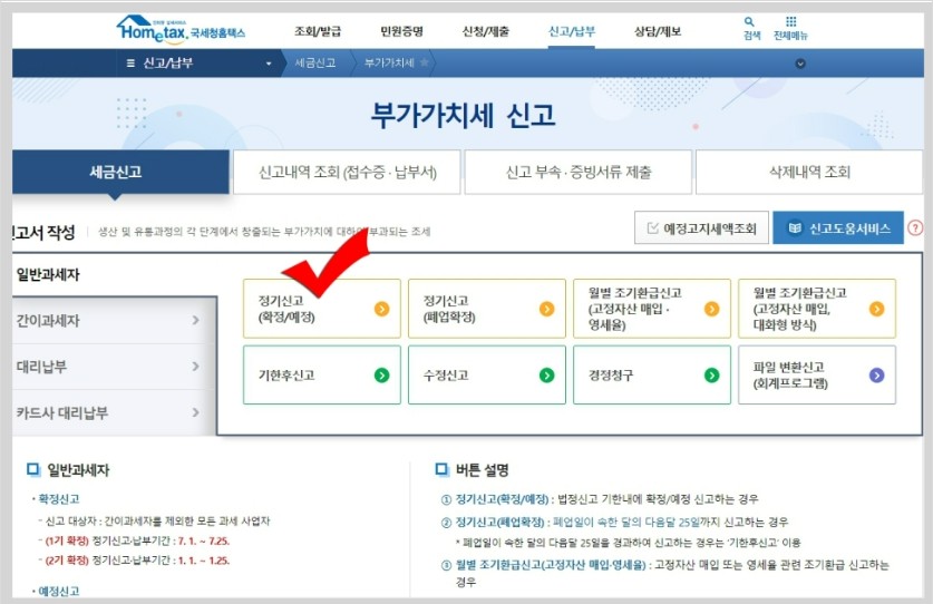 ๊ฐ์ด๊ณผ์ธ์๋ 1๋ถ๊ธฐ์ 2๋ถ๊ธฐ๋ก ๋๋์ด์ง ๋ถ๊ฐ๊ฐ์น์ธ ํ์ ์ ๊ณ ๊ฐ ์๋ 1.1~12.31์ ์ค์ ์ ๋ฐ๋ฅธ ๋ถ๊ฐ๊ฐ์น์ธ๋ง 1๋ ์ ํ ๋ฒ ์ ๊ณ ํ๋ฉด ๋ฉ๋๋ค.