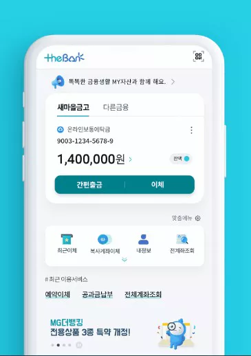 ์๋ง์๊ธ๊ณ ์ ์ธํฐ๋ท ๋ฑ ํน ์๋น์ค๋ ๊ณ ๊ฐ์ด ์ธ์ ์ด๋์๋ ์์ ์ ๊ณ์ข๋ฅผ ๊ด๋ฆฌํ๊ณ ๋ค์ํ ๊ธ์ต ๊ฑฐ๋๋ฅผ ํ ์ ์๋๋ก ๋์์ฃผ๋ ์๋น์ค์ ๋๋ค. ๊ณ์ข ์กฐํ, ์ด์ฒด, ๊ณต๊ณผ๊ธ ๋ฉ๋ถ ๋ฑ ์ฌ๋ฌ ๊ฐ์ง ๊ธฐ๋ฅ์ ์ ๊ณตํ์ฌ ์๊ฐ๊ณผ ์ฅ์์ ๊ตฌ์ ๋ฐ์ง ์๊ณ ๊ธ์ต ๊ฑฐ๋๋ฅผ ํ ์ ์์ต๋๋ค. ๋ํ, ๋ณด์๋ ์ฒ ์ ํ๊ฒ ๊ด๋ฆฌ๋๋ฏ๋ก ์์ฌํ๊ณ ์ด์ฉํ ์ ์์ต๋๋ค.