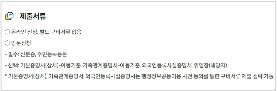 μ¨λΌμΈ μ μ²μ΄ μ΄λ €μ΄ κ²½μ°, μ£Όμμ§ νμ 볡μ§μΌν°λ₯Ό λ°©λ¬Έν΄ μ μ²ν μ μμ΅λλ€. λ°©λ¬Έ μμλ κ΅¬λΉ μλ₯λ₯Ό μ€λΉν΄μΌ ν©λλ€.