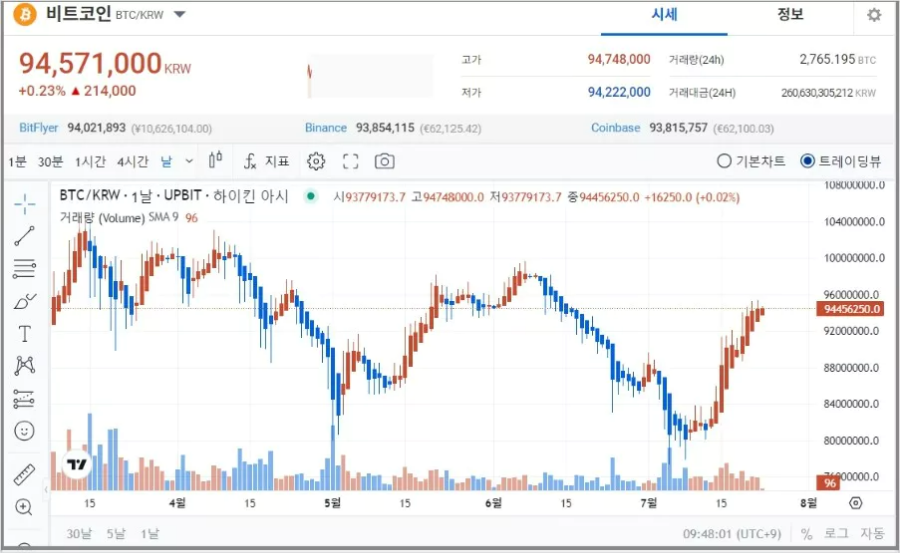 ํฌ์คํ ์์ ์ธ 23์ผ ์ค์ 9์ 47๋ถ ํ์ฌ ๋นํธ์ฝ์ธ ๊ฐ๊ฒฉ์ ์ ๋นํธ ๊ธฐ์ค์ผ๋ก 9,4571,000์์ ๋๋ค.